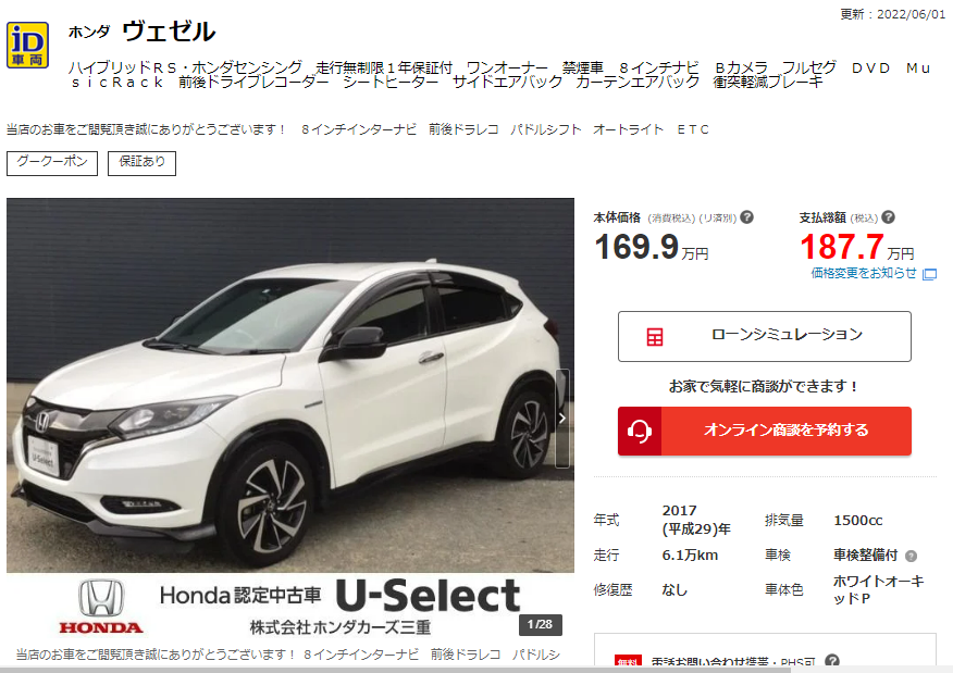 - 사후보증이 든든하다! 흰색 베젤RS 판매처는 혼다인증중고차 매장이고, 구매 옵션으로 2년간 무상보증, 2년뒤 차검이 포함된다.