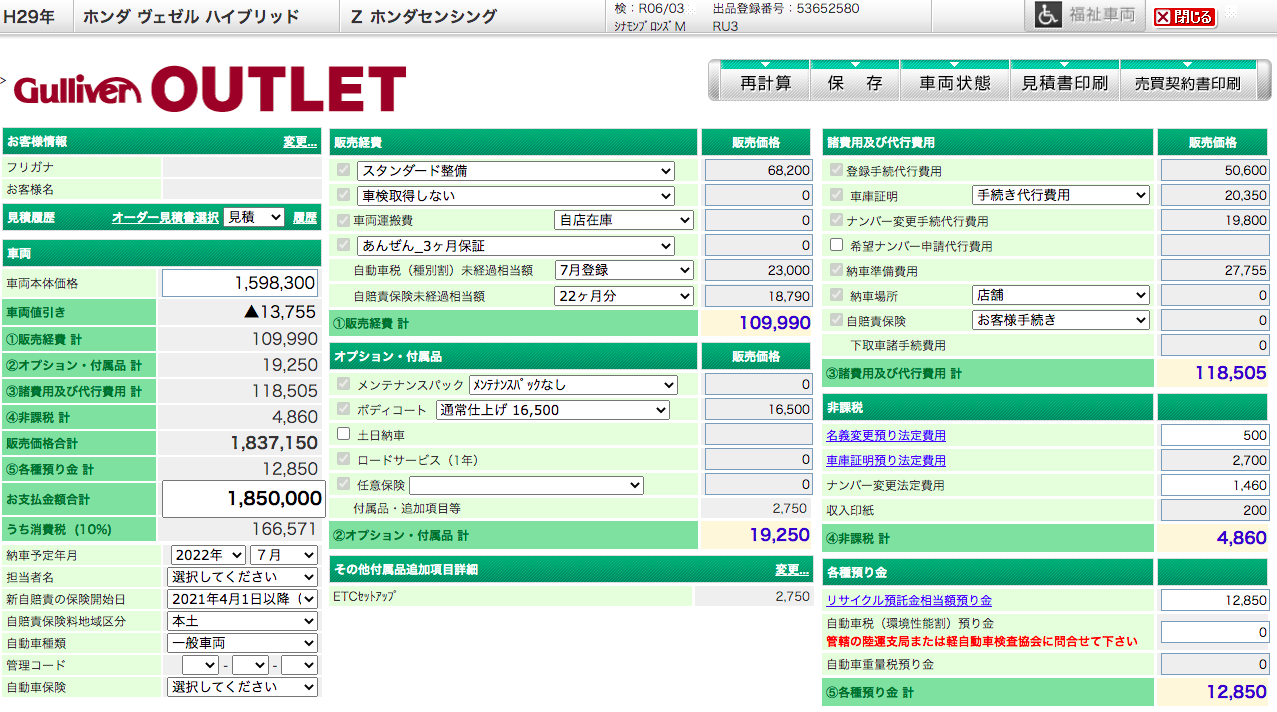 결과적으로 175만엔 정도에 구입이 가능했다.